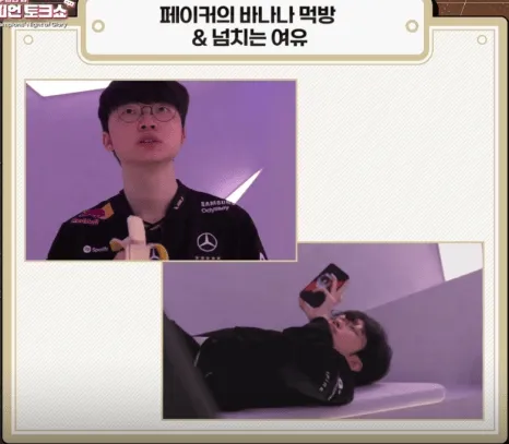 Faker:這是非常有職業(yè)精神的場(chǎng)面,我躺著分析對(duì)手KT的比賽。香蕉是能迅速吸收的碳水化合物。