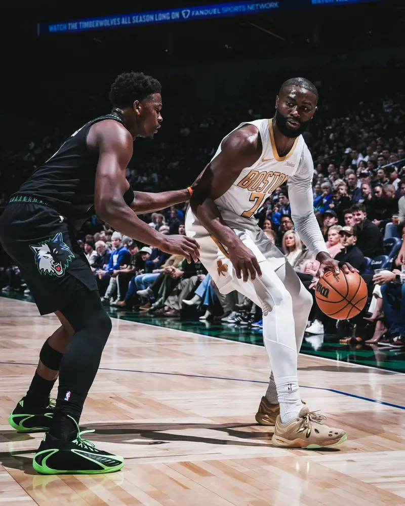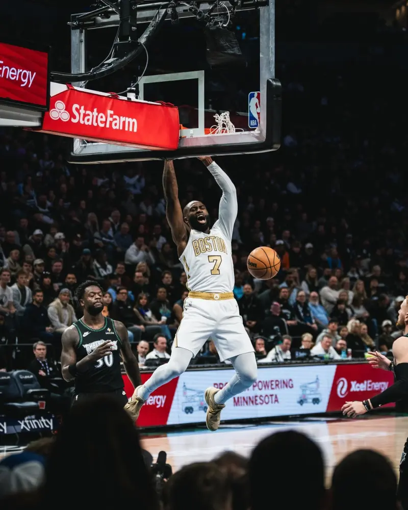 在今日凱爾特人以115-119不敵森林狼的比賽中,杰倫-布朗出場(chǎng)39分鐘,得到41分6籃板7助攻5搶斷1蓋帽,投籃32中17。