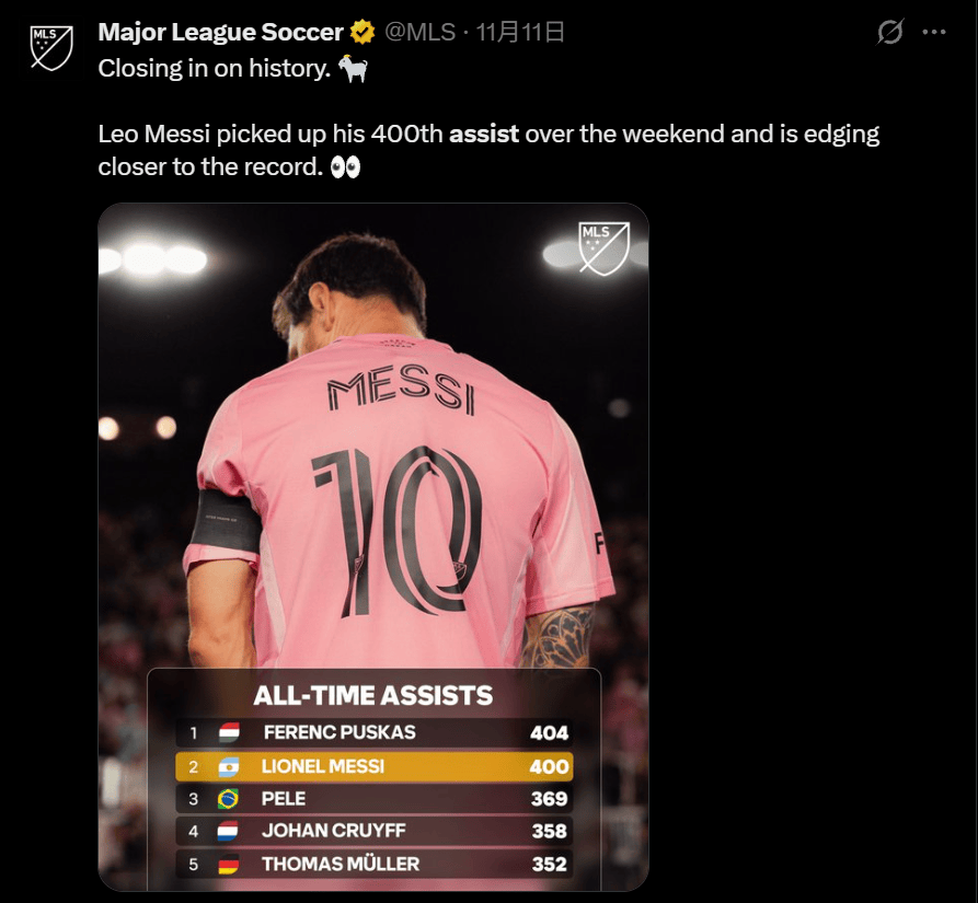 (編者注:由于年代較遠(yuǎn),普斯卡什的具體助攻次數(shù)并無嚴(yán)謹(jǐn)數(shù)據(jù)考證,404次是普遍采信的說法,美職聯(lián)官方此前也采用了這一數(shù)字)