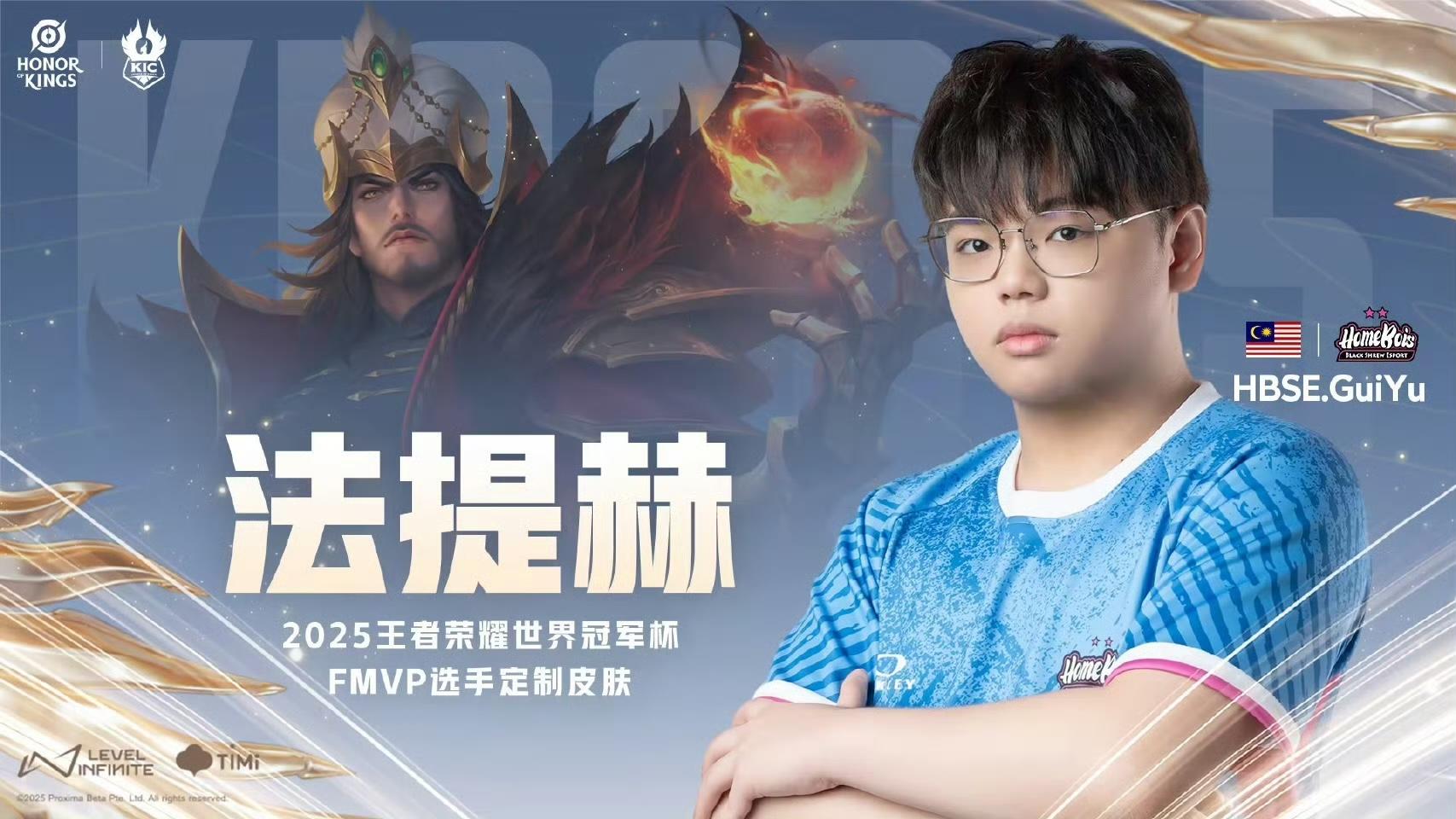 再度恭喜????HBSE.Guiyu獲得了2025王者榮耀世界冠軍杯總決賽FMVP,赫作他選擇【法提赫】作為他的定制FMVP定制皮膚英雄!