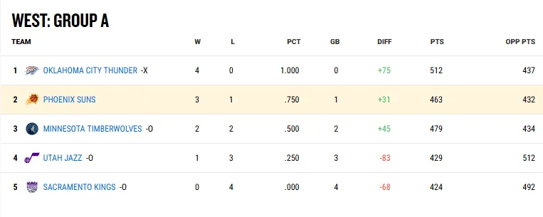 太陽(yáng)目前3勝1負(fù),組賽需要等B組快船和灰熊比賽結(jié)束后判斷能否晉級(jí)。晉級(jí)