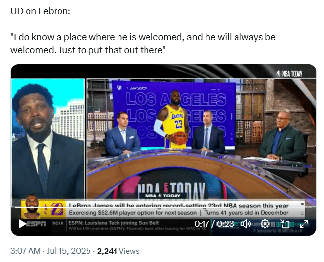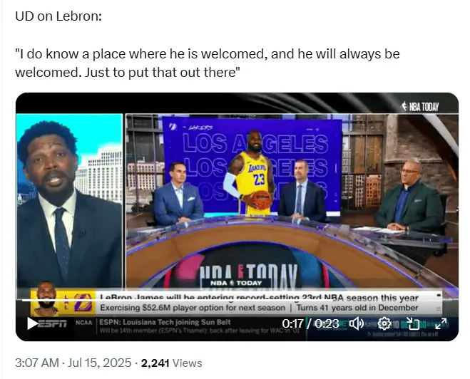 今日,詹姆老隊(duì)友哈斯勒姆在一檔節(jié)目中談到了詹姆斯今夏的且永交易動(dòng)態(tài):