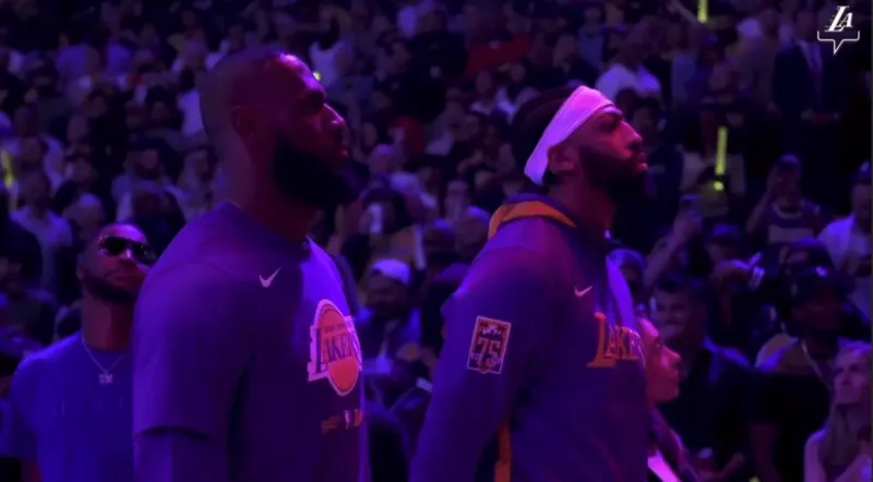勒布朗詹姆斯太壞了,濃眉在場上準(zhǔn)備賽前的熱身運(yùn)動。