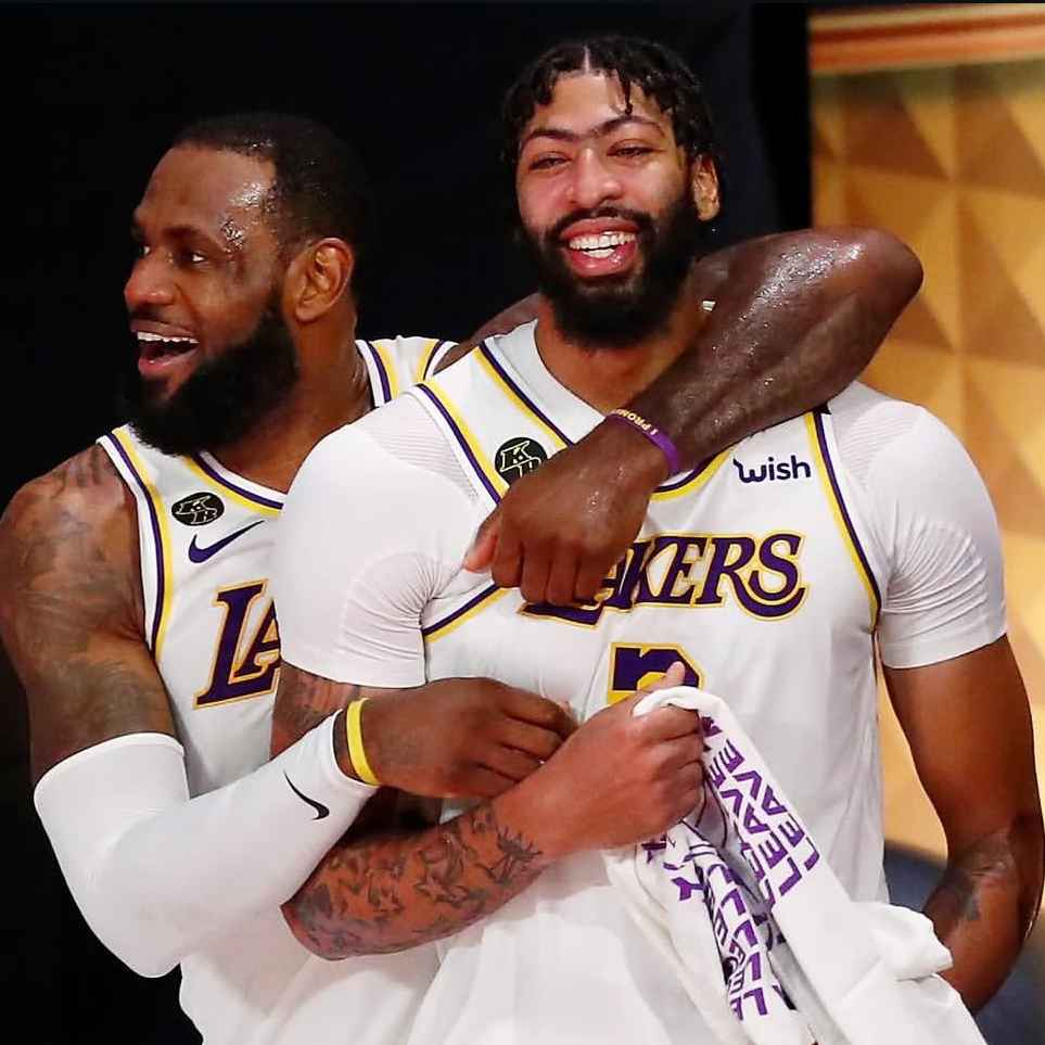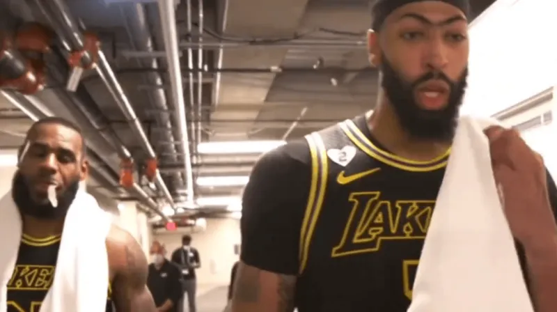 2020年西部決賽戰(zhàn)勝掘金后,詹姆斯走在濃眉前面,兩人走到更衣室,詹姆斯帶著他逐個和隊(duì)友擊掌。