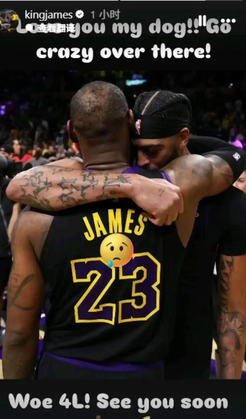 濃眉前往獨(dú)行俠時,詹姆斯在這一天更新社媒:“愛你,我的兄弟!去那邊瘋狂吧,永遠(yuǎn)的痛,很快再見?!?/p>