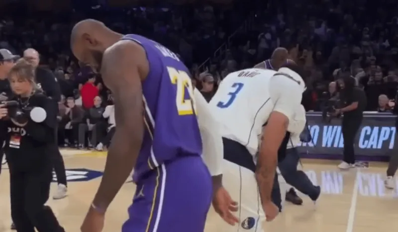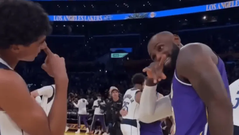 而比賽還沒結(jié)束,詹姆斯沒有像以往那樣提前走向球員通道,而是早早去到了獨(dú)行俠替補(bǔ)席,與濃眉做起了熟悉的慶祝手勢。
