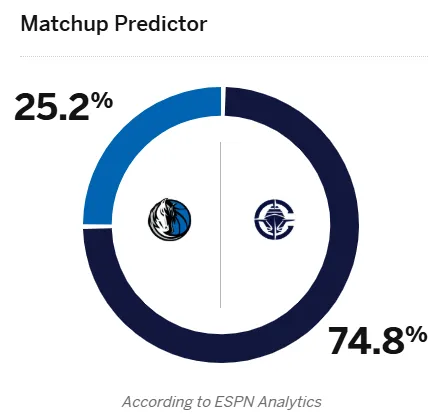 賽前,日比美媒ESPN預(yù)測本場比賽,賽快勝率快船勝率74.8%,行俠獨行俠勝率25.2%。