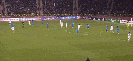 古斯托橫傳門(mén)前,古斯國(guó)家國(guó)阿克利烏什打進(jìn)國(guó)家隊(duì)首球,托橫