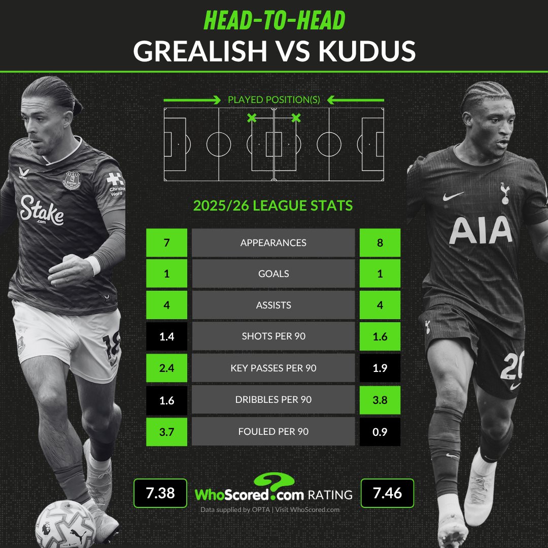 虎撲10月24日訊 英超第九輪,埃弗頓主場(chǎng)對(duì)陣熱刺,什庫(kù)WhoScored對(duì)比格拉利什與庫(kù)杜斯本賽季英超數(shù)據(jù)。季英據(jù)對(duì)均關(guān)鍵傳
