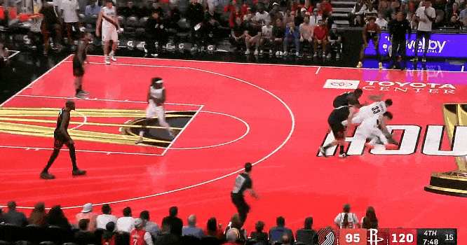 虎撲11月15日訊 NBA杯小組賽,開拓者對陣火箭的激勵比賽正在進行中。