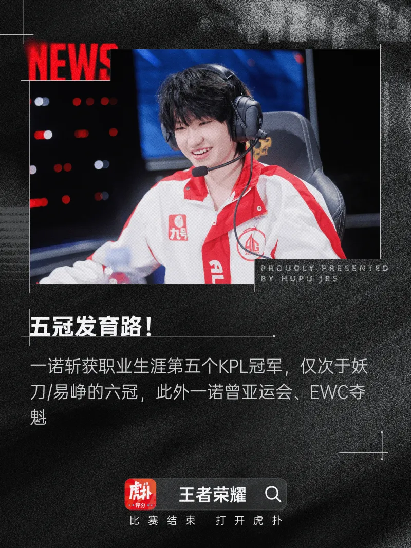 一諾五冠為:2019KPL秋季賽冠軍、2023世界冠軍杯冠軍、2024KPL夏季賽冠軍、2024年總冠軍、2025KPL春季賽冠軍;