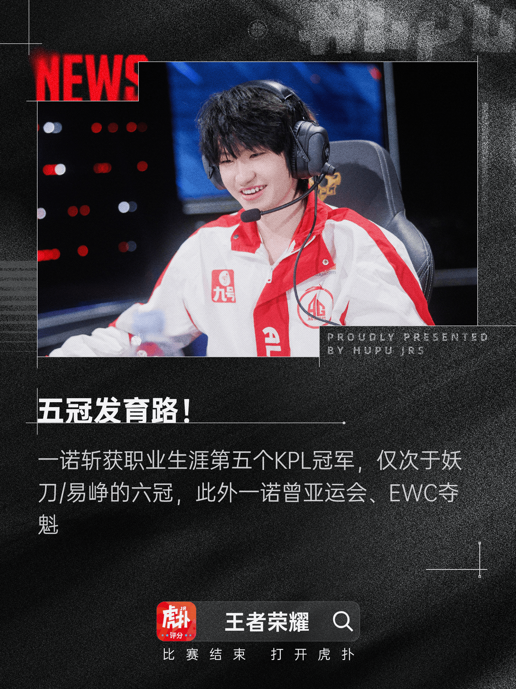 虎撲05月10日訊 一諾斬獲職業(yè)生涯第五個KPL冠軍,僅次于妖刀/易崢的六冠,此外一諾曾亞運會、EWC奪魁。