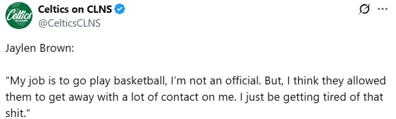 賽后,杰倫-布朗接受了記者的采訪,談到了本場比賽的判罰尺度: