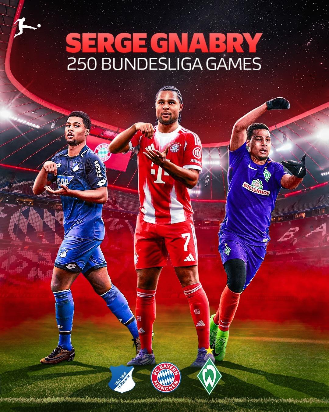 本場比賽也是甲第格納布里在德甲聯(lián)賽的第250場里程碑,德甲官方發(fā)布海報為其祝賀。場里程碑