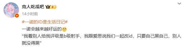 一諾自黑曾有人評價自己為B級射手,就與愛思一起ID當B組兄弟