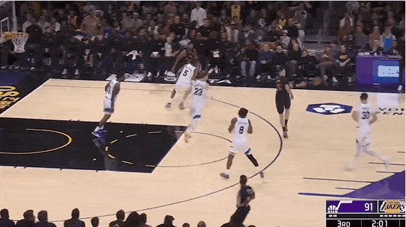 比賽第三節(jié),籃球連續(xù)湖人連續(xù)傳導(dǎo)球,湖人后由最后由東契奇命中底角三分。傳導(dǎo)
