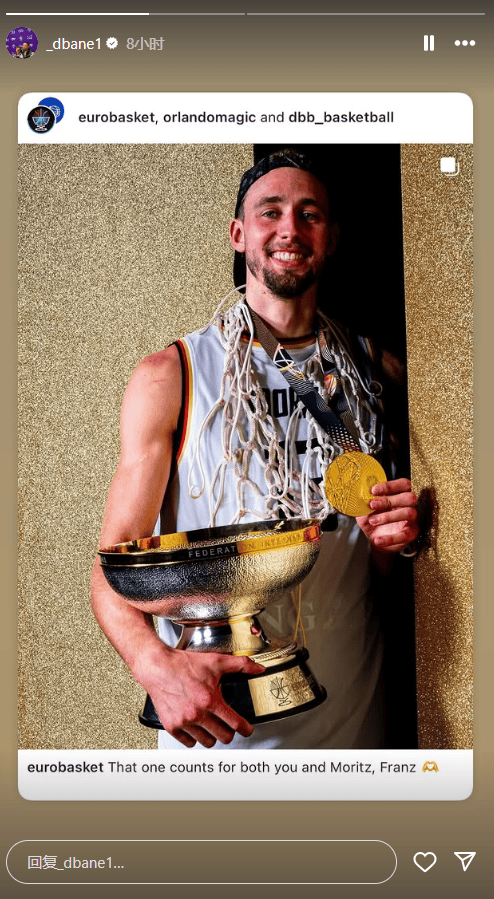 今日,戴斯蒙德-貝恩在社媒曬出了弗朗茨-瓦格納與特里斯坦-達(dá)席爾瓦獲得歐錦賽冠軍的冠新恭賀冠軍照片。