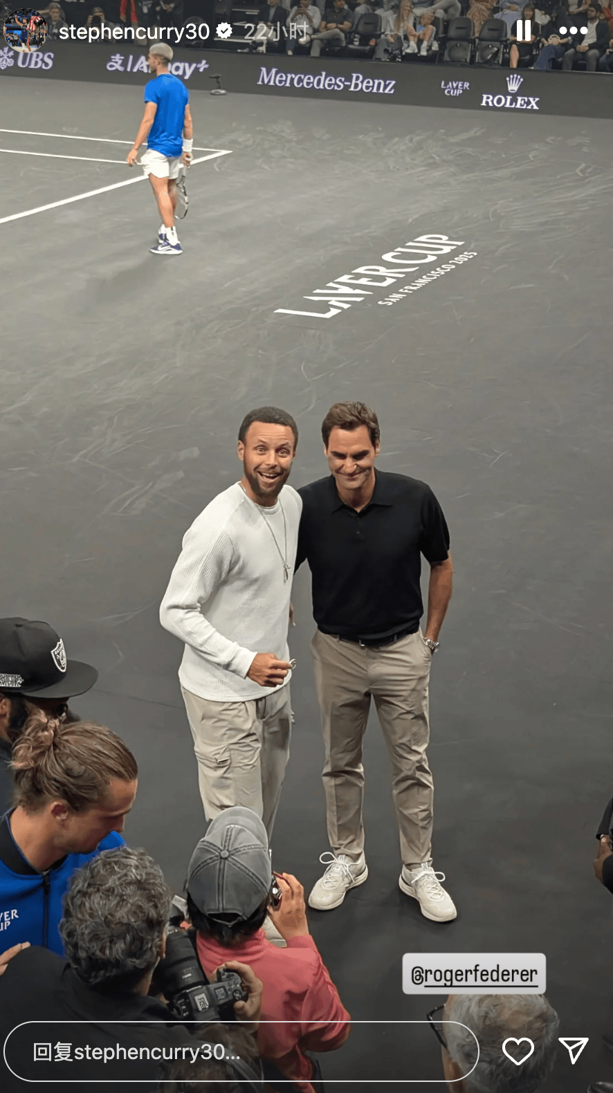 “與費(fèi)德勒先生一起出席,曬費(fèi)美好的德勒一天??????”庫(kù)里還如此寫道。