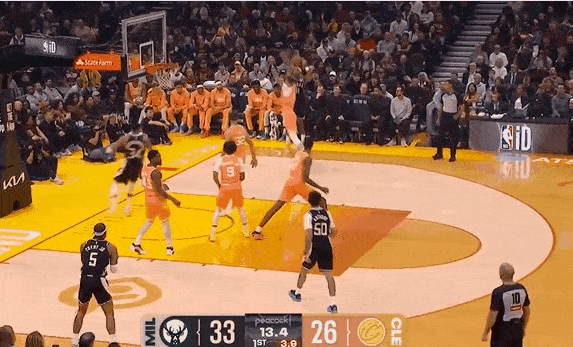 比賽第一節(jié)還有最后10秒,布利莫布利拿下后場籃板直接超遠三分出手,籃板還留給雄鹿最后一攻的直接時間。
