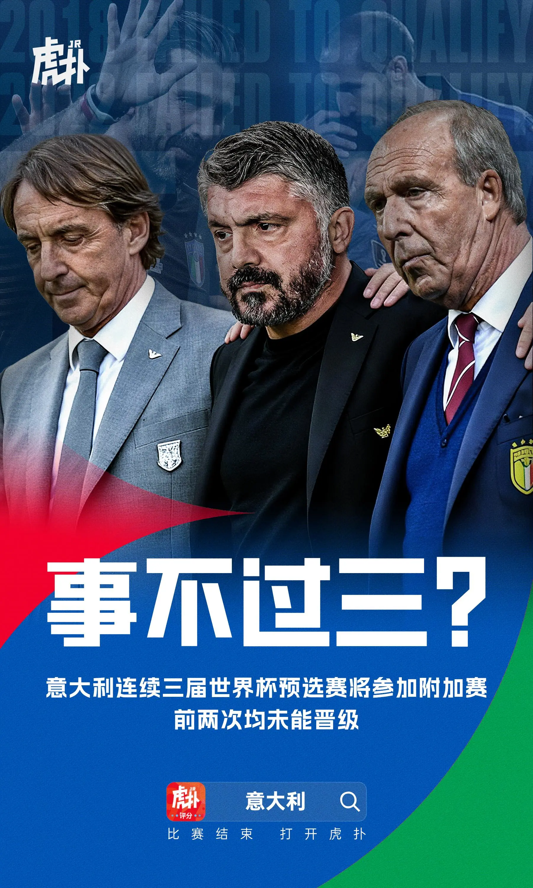 虎撲11月17日訊 在今夜結(jié)束的世界杯歐洲區(qū)預(yù)選賽中,意大利在凈勝至少9球才能出線的情況下主場1-4被挪威逆轉(zhuǎn),最終位列本組第二,無緣直通美加墨世界杯。