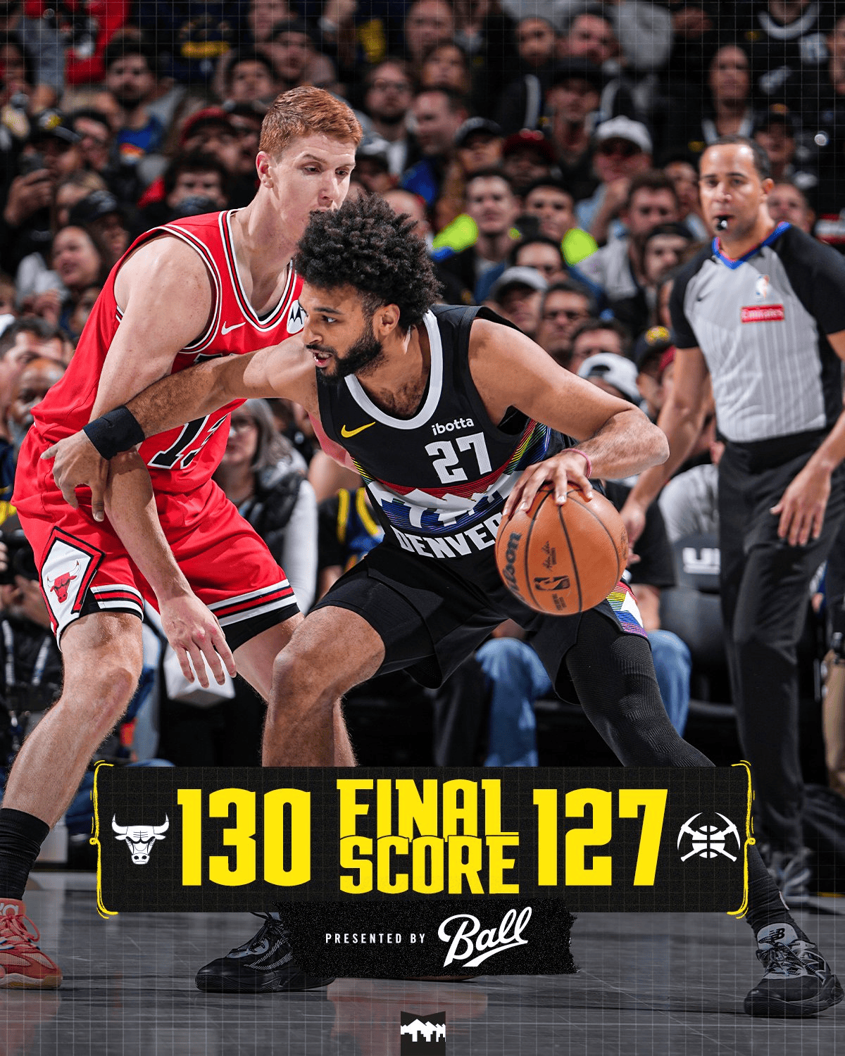 虎撲11月18日訊 今日NBA常規(guī)賽,公牛130-127戰(zhàn)勝掘金