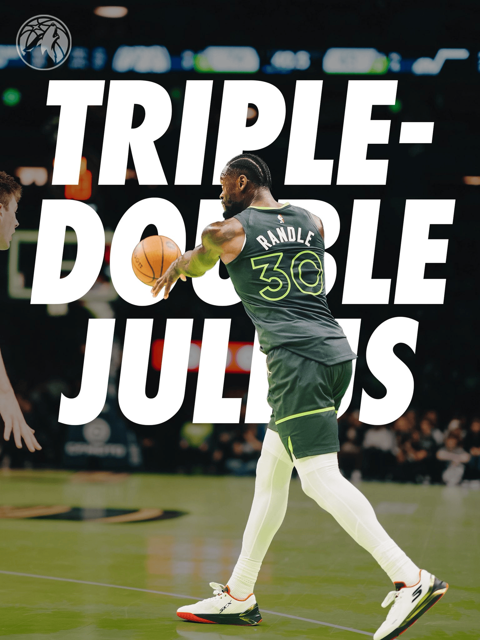 森林狼官方社媒分享蘭德爾三雙數(shù)據(jù)海報,海報并寫道:3場比賽中的場比次雙第2次三雙。